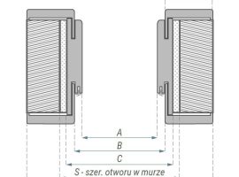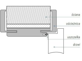 Kompletna ościeżnica składa się z belki górnej oraz bazy i stanowi w całości jedno opakowanie. W opakowaniu znajdują się ponadto okucia, uszczelki i zestaw montażowy. Dla skrzydeł o wymiarach 100’ lub skrzydeł wzmocnionych wymagana jest ościeżnica z trzema zawiasami.